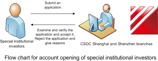 Special institutional investors, including securities companies, insurance companies, securities investment funds and social security funds, shall directly apply to the CSDC Shanghai or Shenzhen branches for opening a securities account.