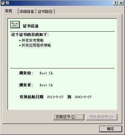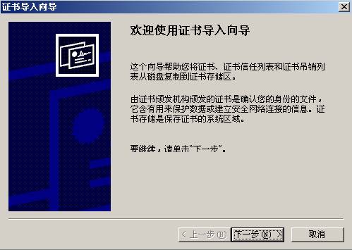 2、點擊上圖中“安裝證書”按鈕,進(jìn)入下圖: