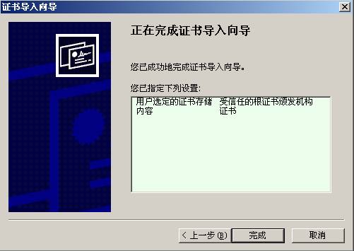 7、點擊上圖中的“完成”按鈕完成證書的安裝。
